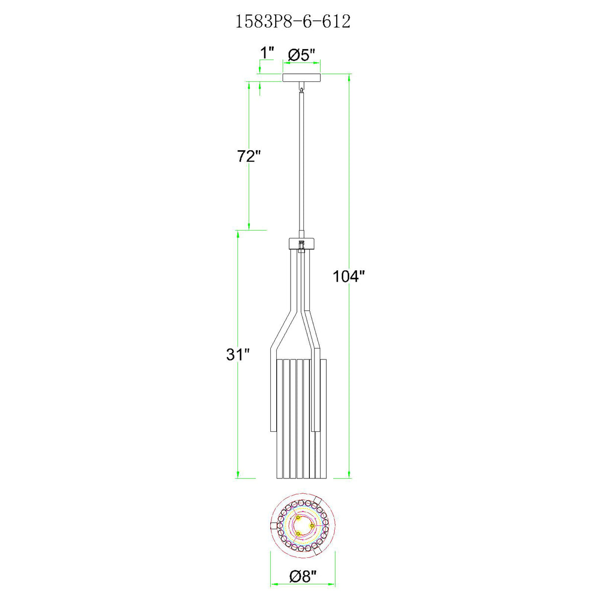 Fermont 6 Light Satin Nickel and Pearl Black Mini Pendant