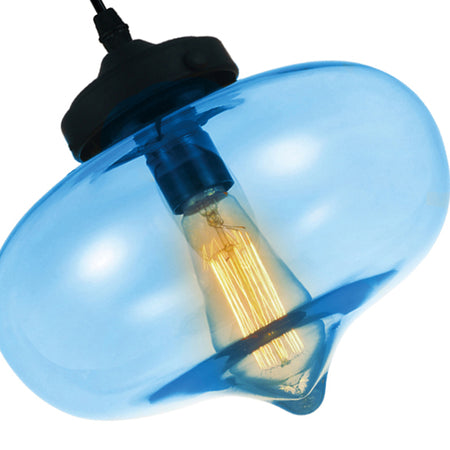 Glass 1 Light Down Mini Pendant With Blue Finish