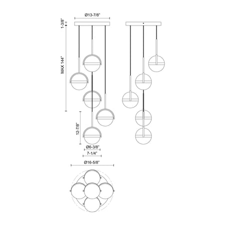 Globo 5 Head Brushed Gold LED Multi Pendant