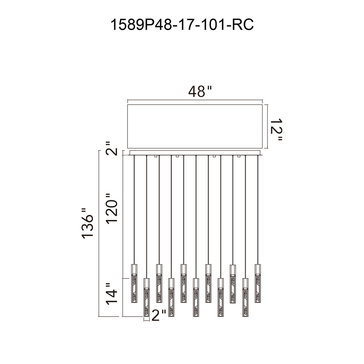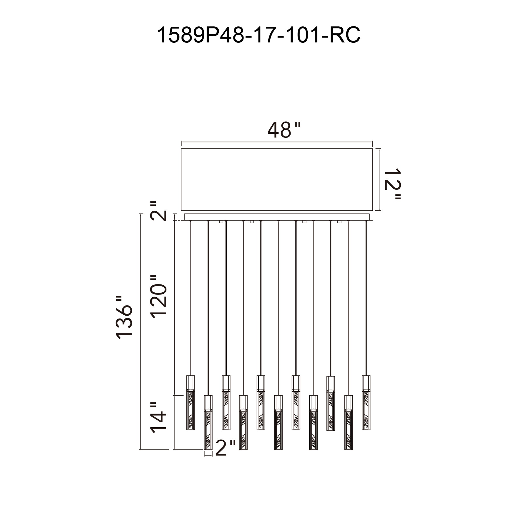 Greta Integrated LED 48in Black Chandelier with Handcrafted Glass