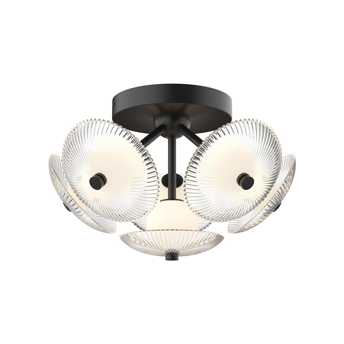 - Finish Matte Black/Clear Ribbed Glass
