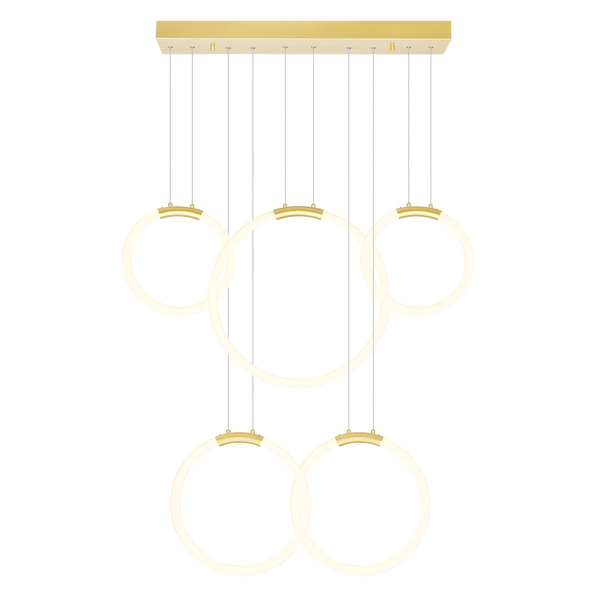 Hoops Integrated LED 44in 5 Ring Satin Gold Chandelier