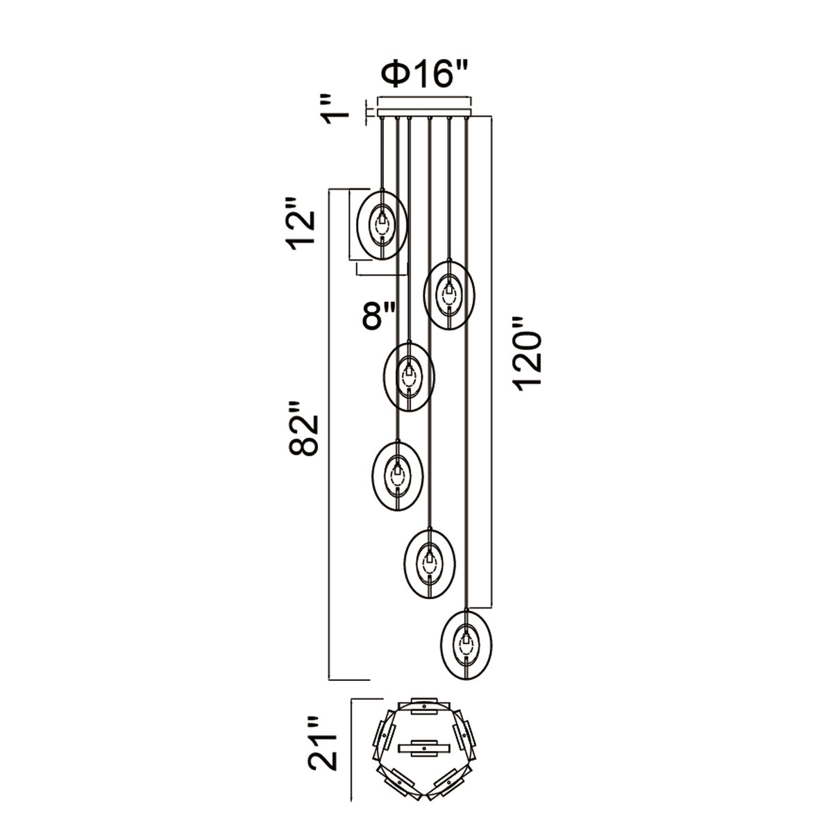Iris 6 Light Pendant With Sun Gold Finish