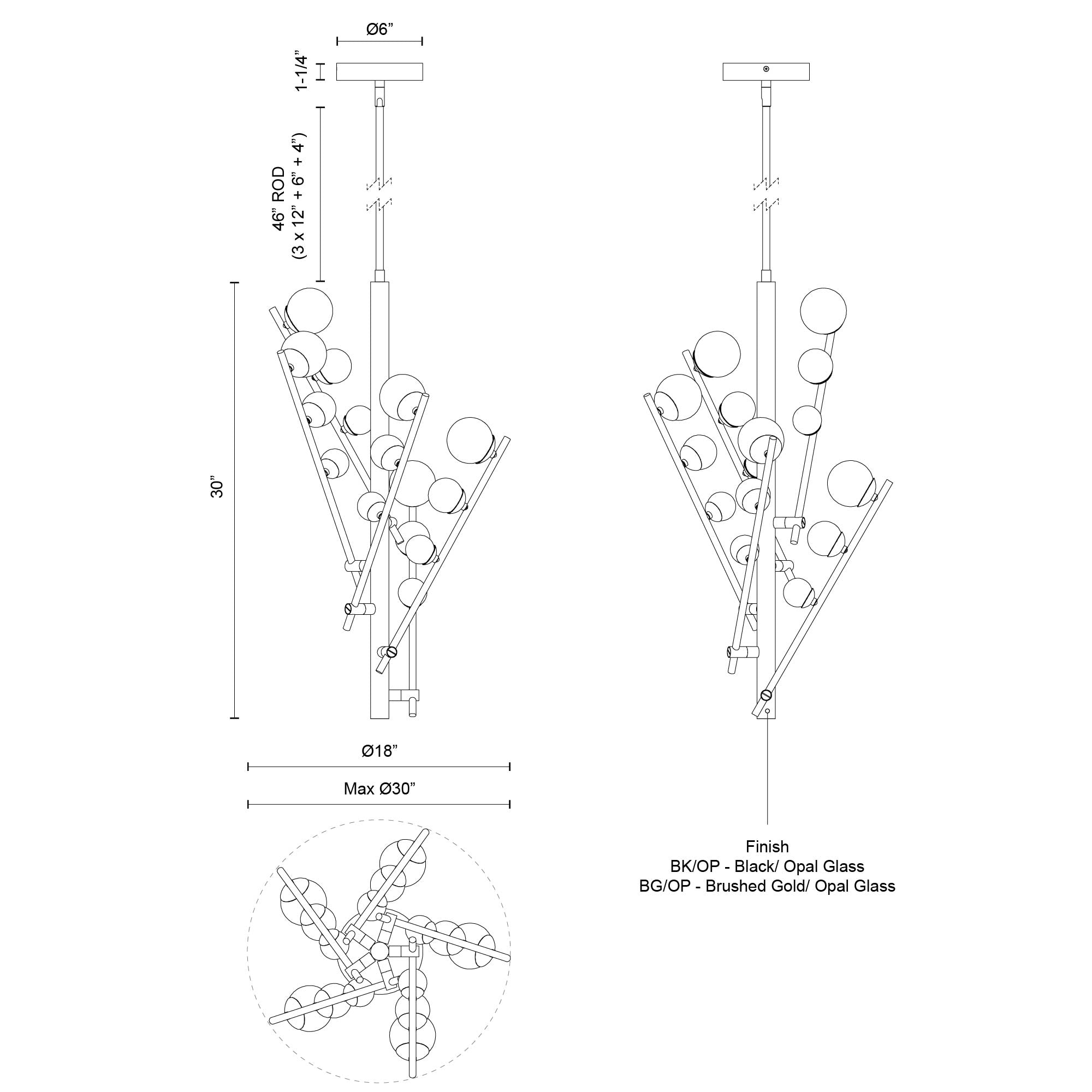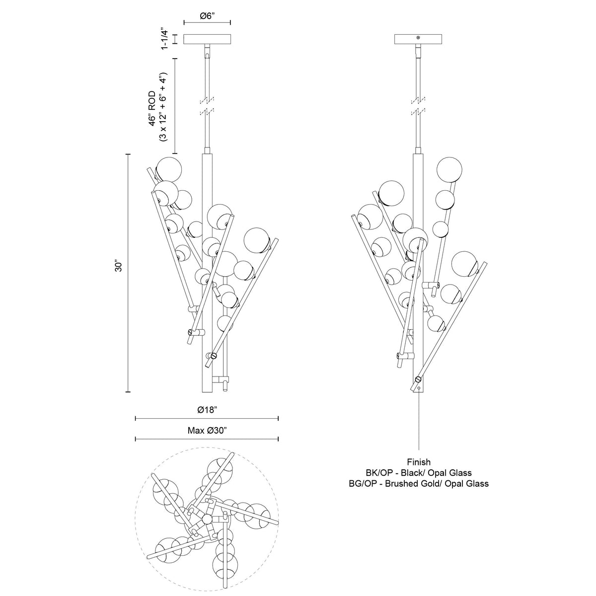 Juniper 5 Head Black/Opal Glass LED Chandelier