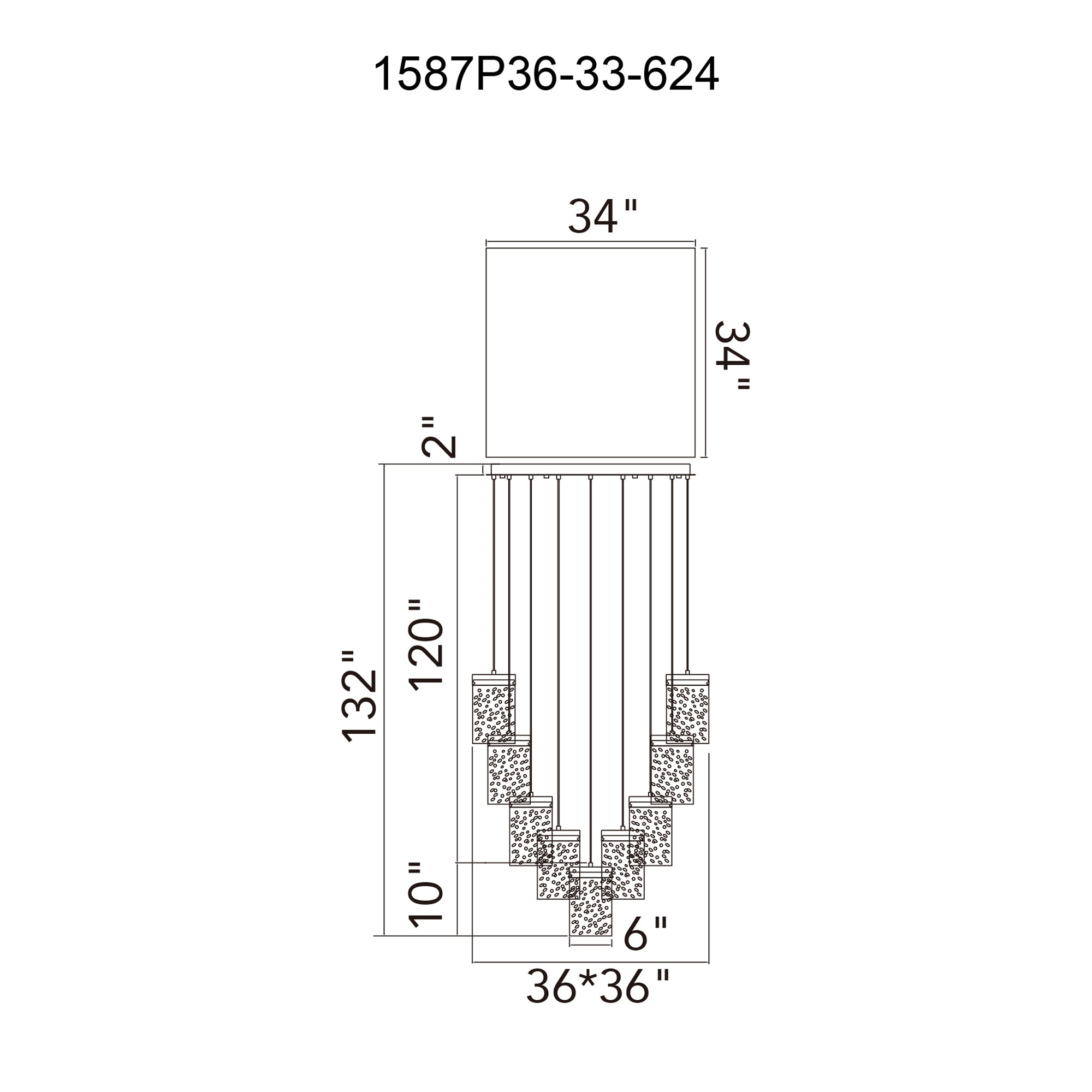 Lava Integrated LED 36in Brass Chandelier with Handcrafted Glass