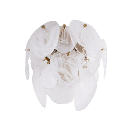 Lily 3 Light Semi Flush Mount, Brushed Brass with Wispy White Murano Style Glass