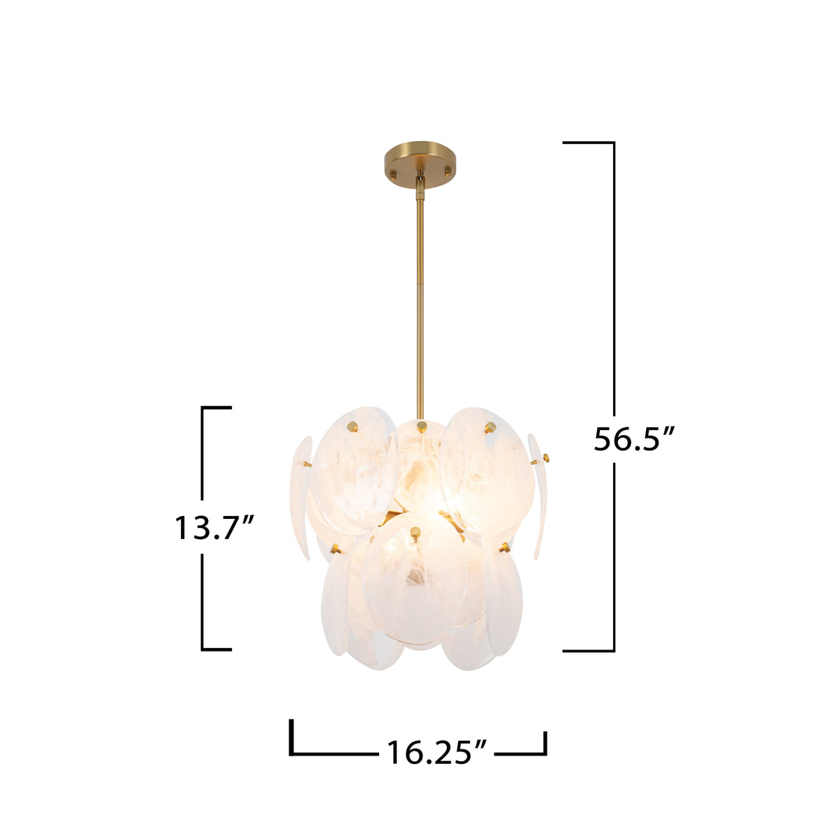 Lily 4 Light Pendant, Brushed Brass with Wispy White Murano Style Glass