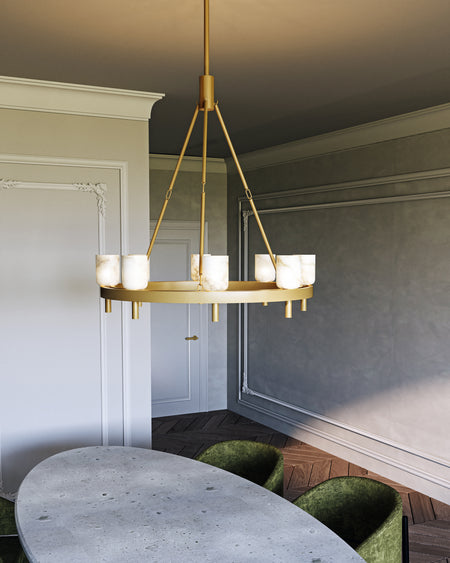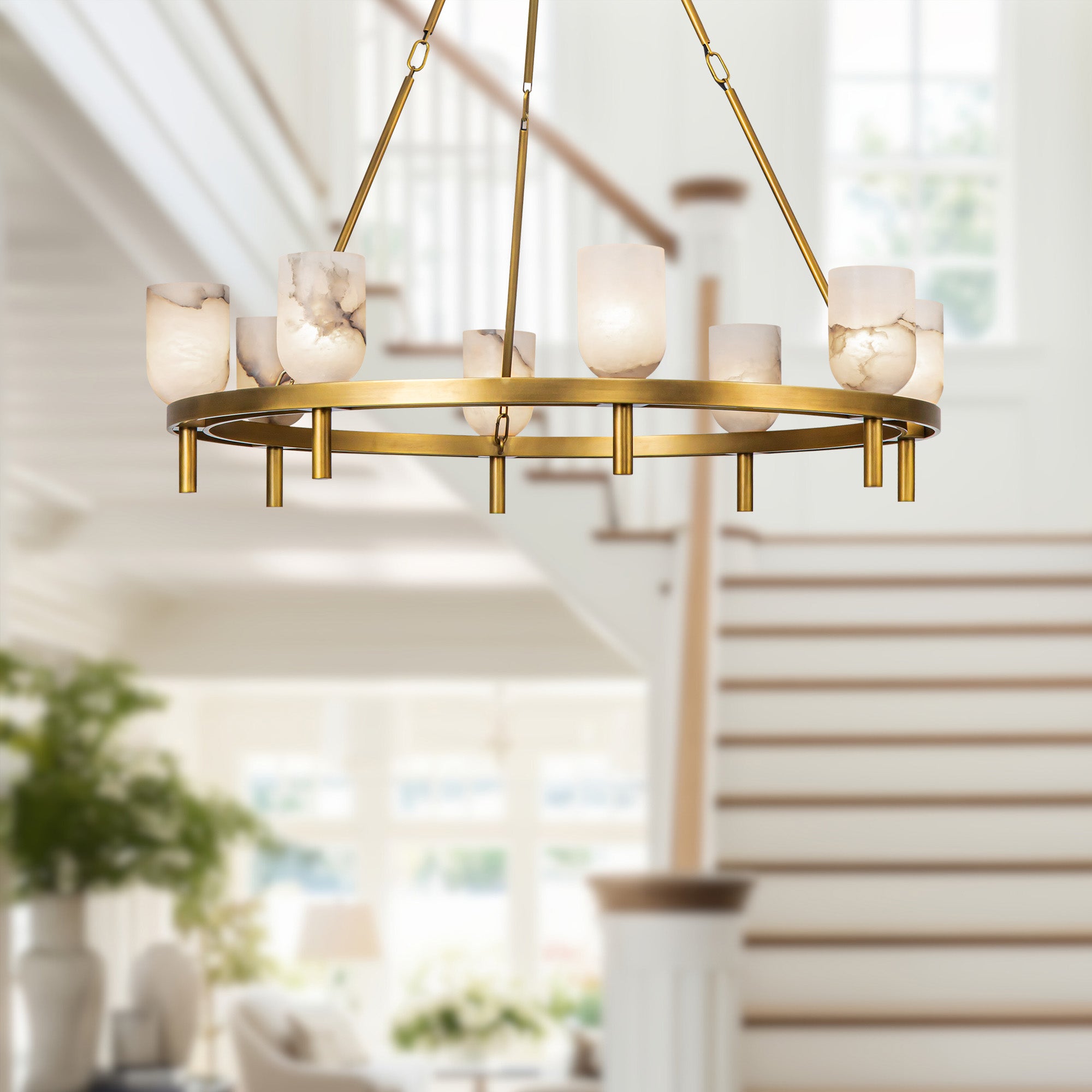 Lucian 36-in Vintage Brass/Alabaster 8 Lights Chandeliers