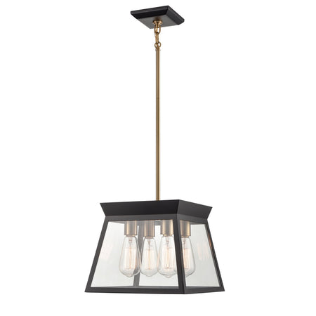 Lucian 4 Light Chandelier 12" Diameter Black and Brushed Brass