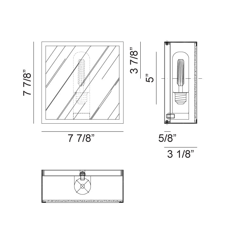 - Size 7 7/8"W x 7 7/8"H x 3 1/8"E