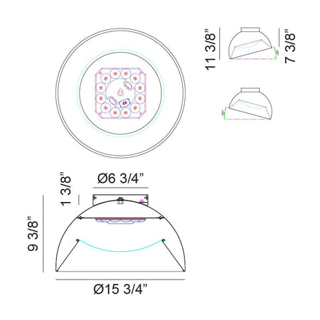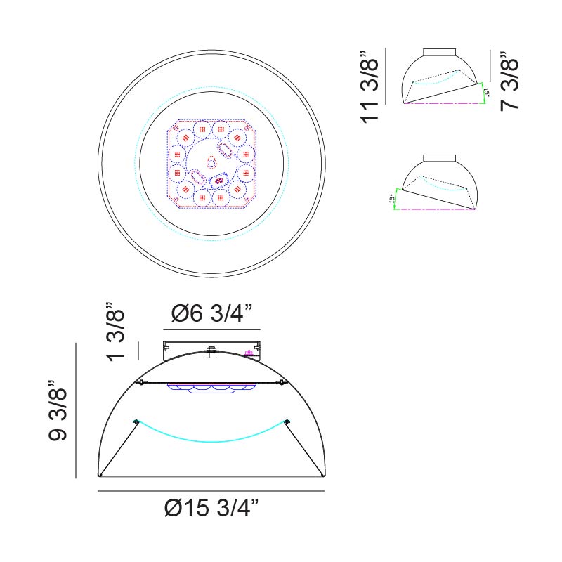 - Size Ø15 3/4" x 9 3/8"H