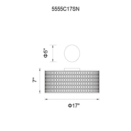 Mikayla 3 Light 17in Satin Nickel Drum Shade Flush Mount