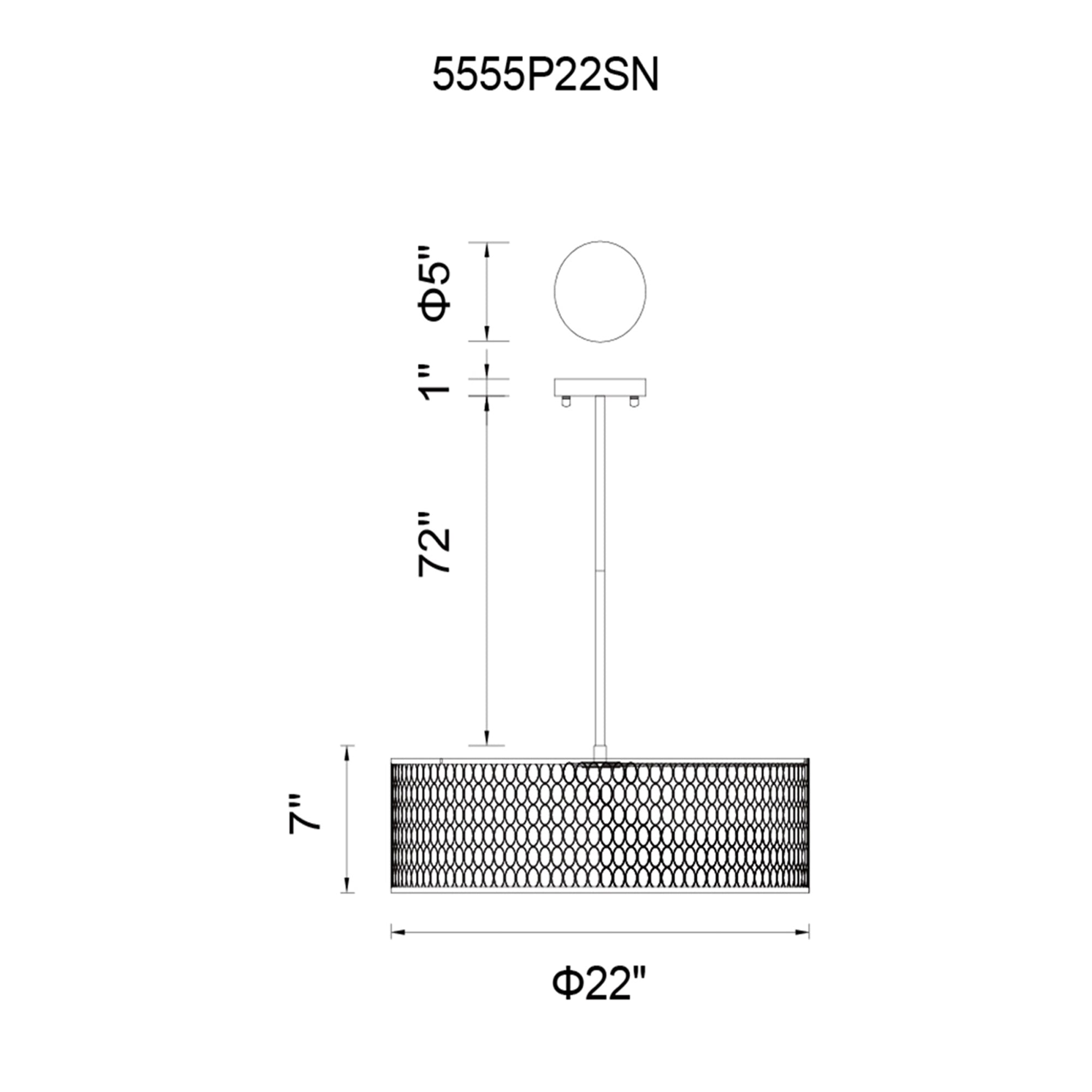 Mikayla 5 Light 22in Satin Nickel Drum Shade Chandelier