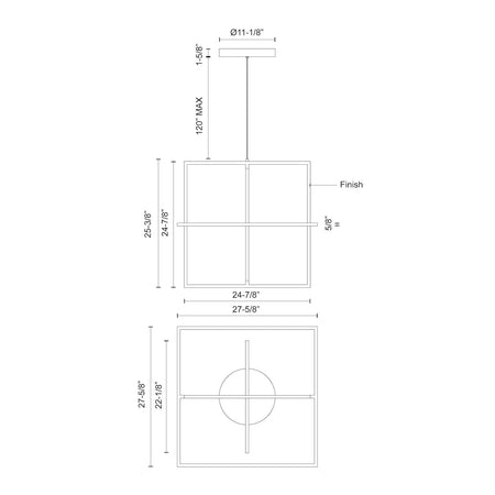 - Size L27-5/8" x W27-5/8" x H25-3/8"