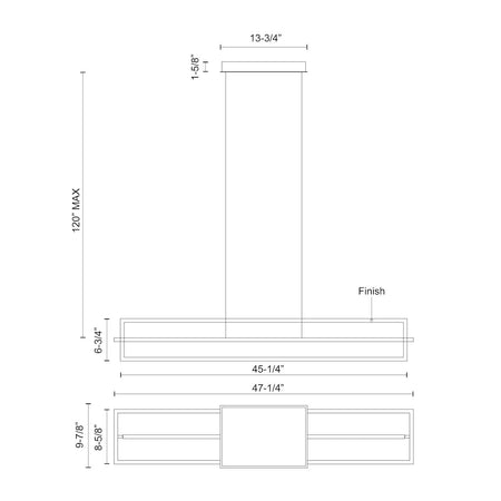 - Size L47-1/4" x W8-5/8" x H6-3/4"