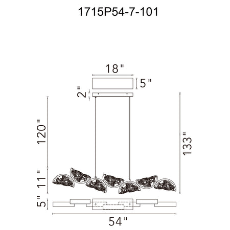 Moon Integrated LED 54in Black Chandelier with Handcrafted Glass