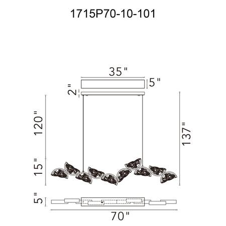 Moon Integrated LED 70in Black Chandelier with Handcrafted Glass
