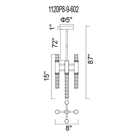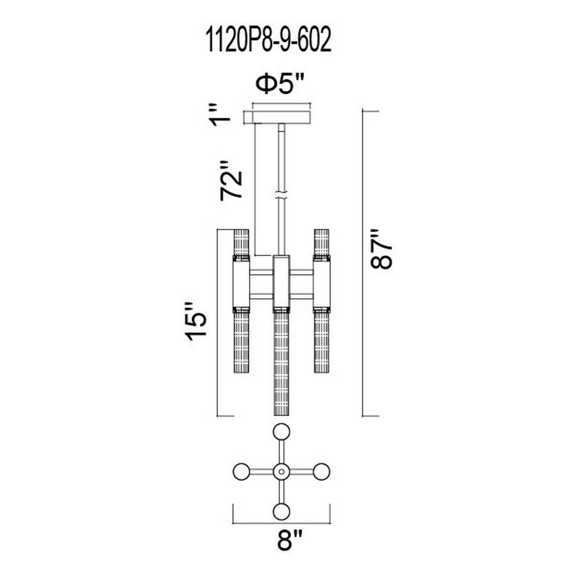 Orgue 9 Light 8in Satin Gold Mini Pendant