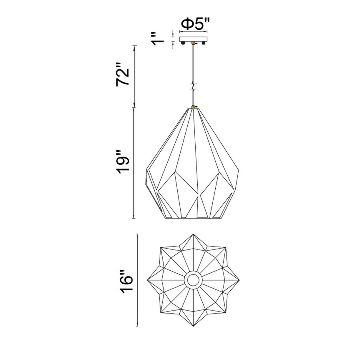 Oxide 1 Light 16in Black & Copper Down Pendant
