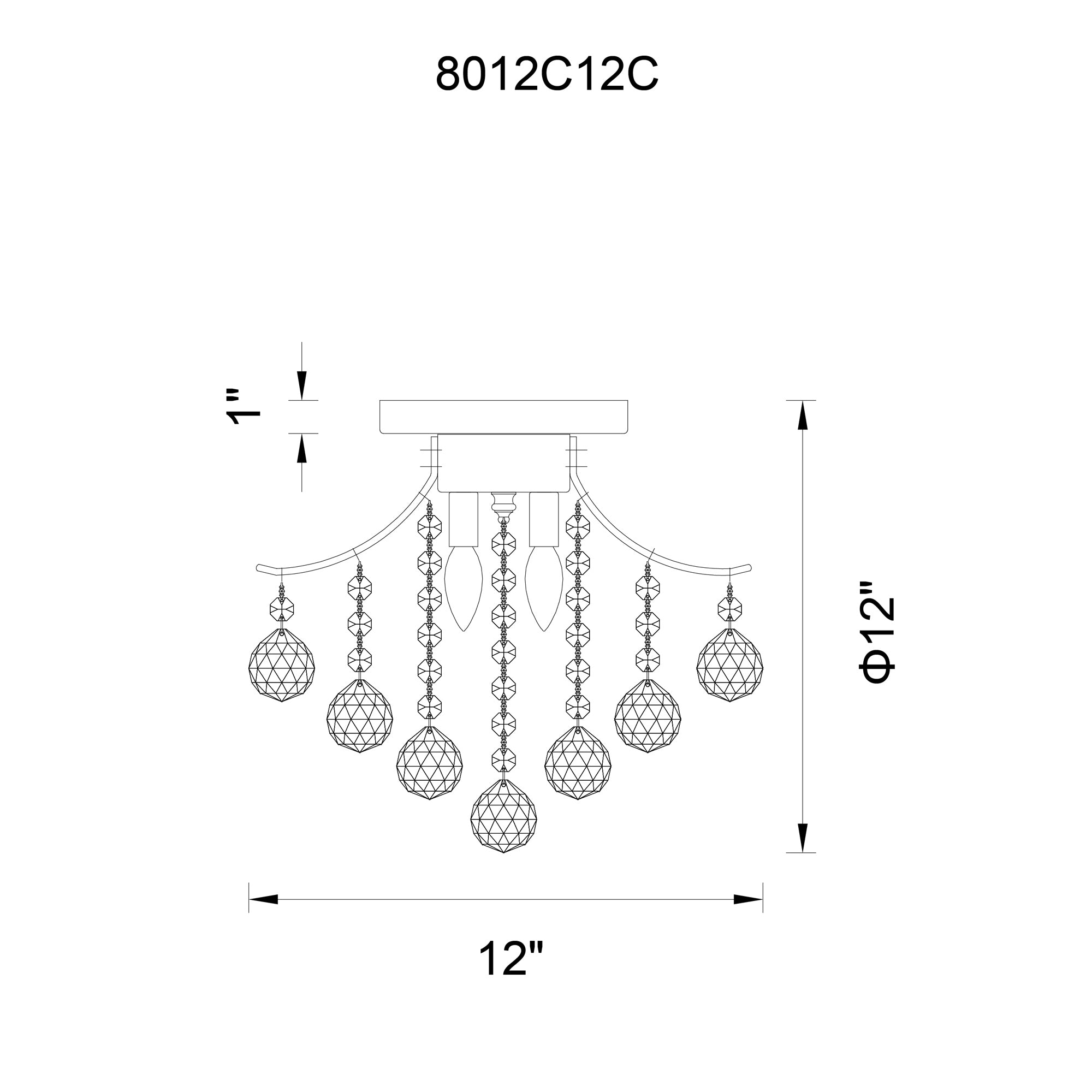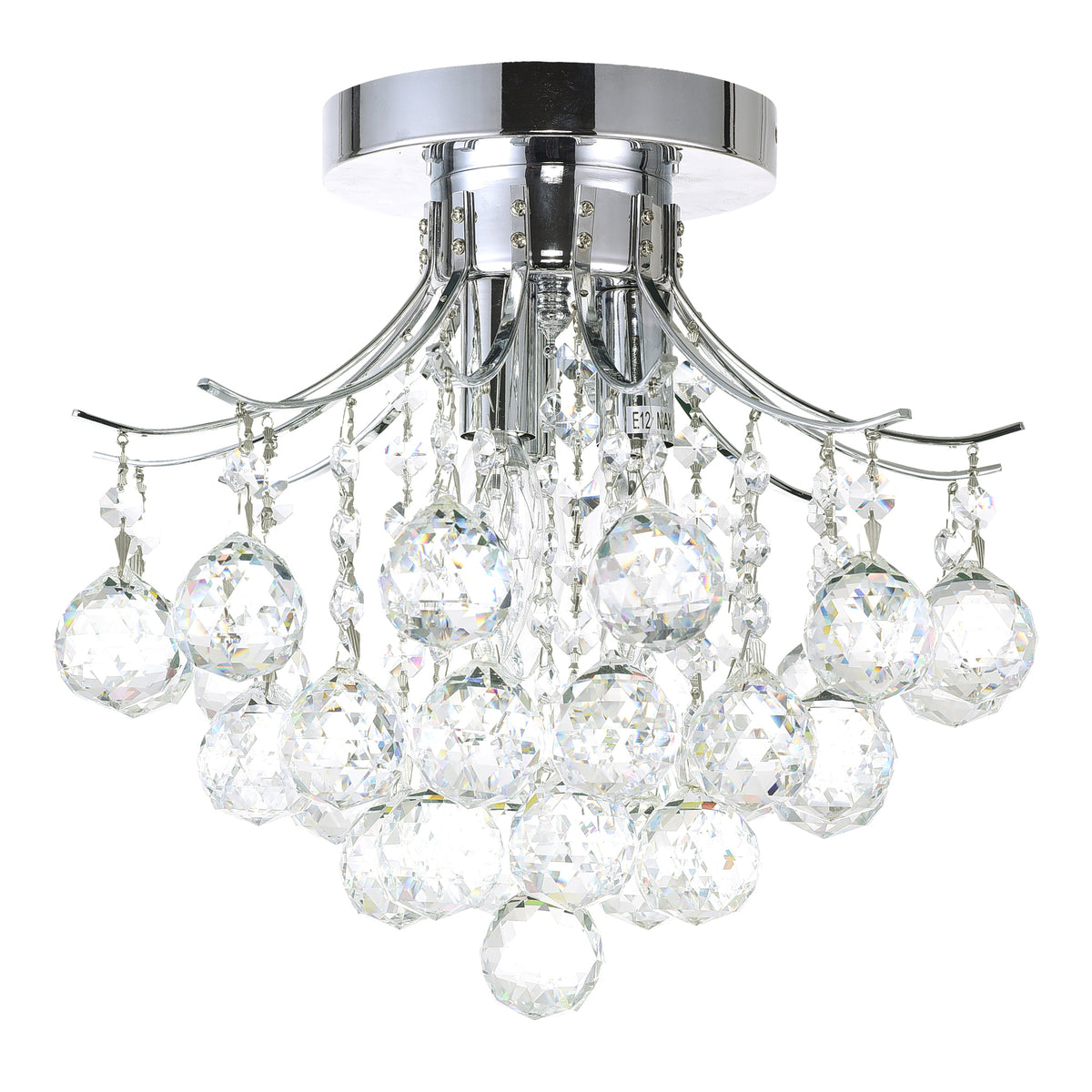 Princess 3 Light 12in Chrome Flush Mount with Crystals