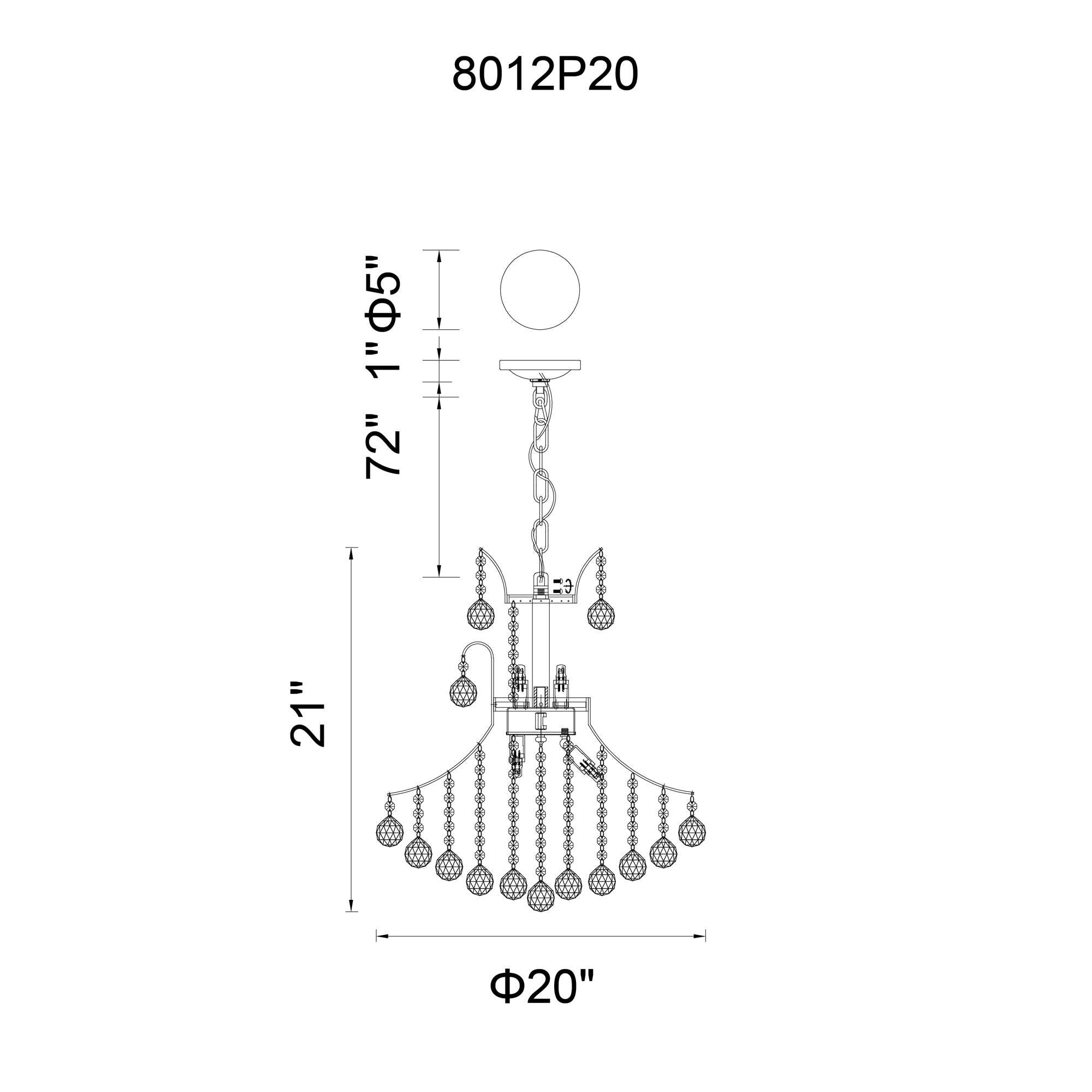 Princess 8 Light 20in Gold Down Chandelier