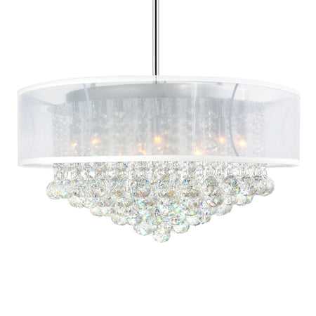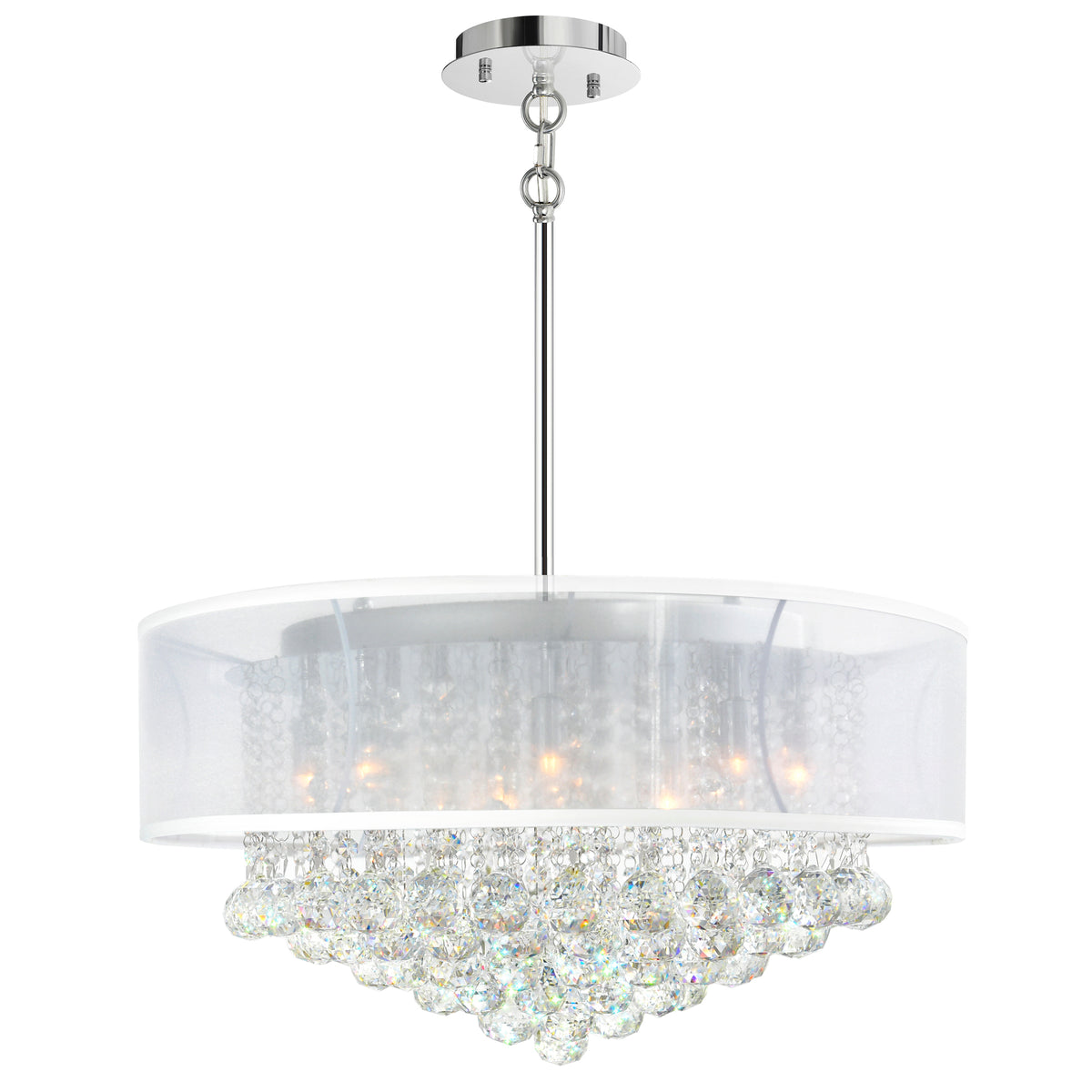 Radiant 12 Light 24in Chrome Drum Shade Chandelier with White Shade