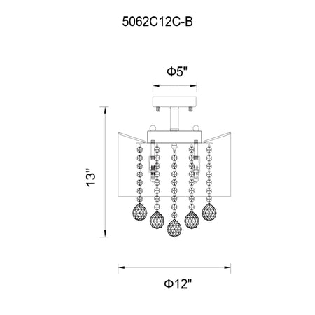 Radiant 3 Light 12in Chrome Drum Shade Flush Mount with Gold Shade