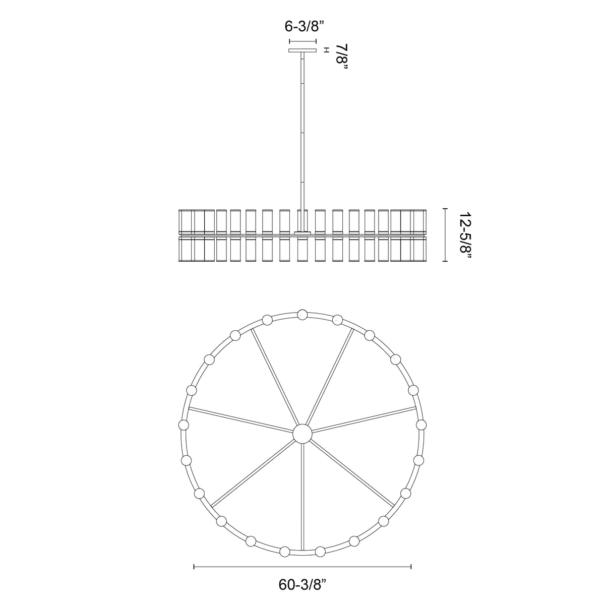 - Size D60-3/8" x H12-5/8"