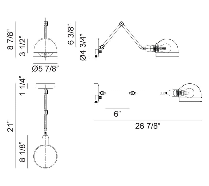 - Size 5 7/8"W x 8 7/8"H x 26 7/8"E Max.