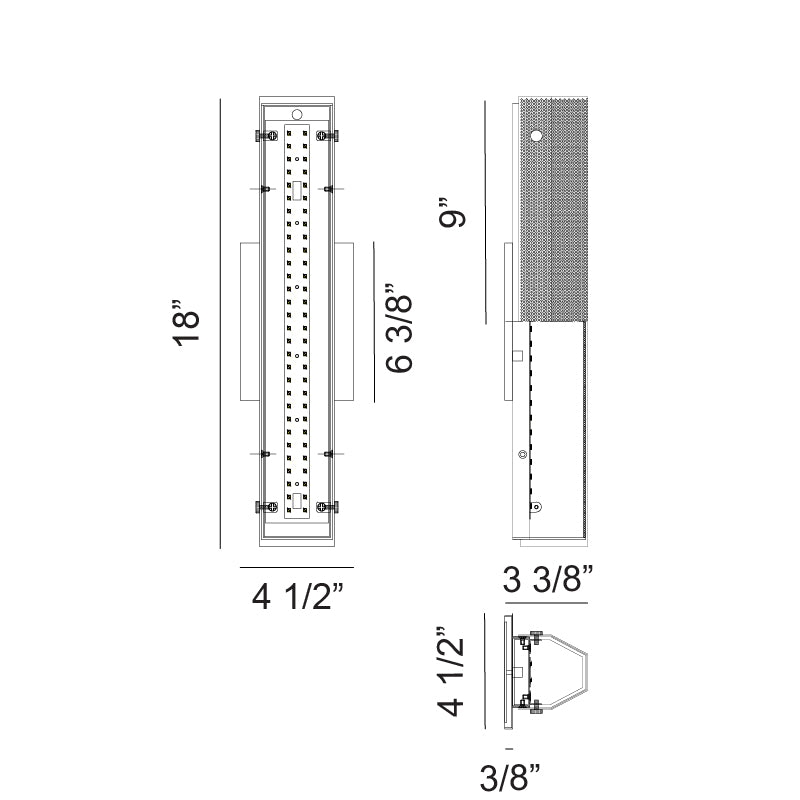 - Size 4 1/2"W x 18"H x 3 3/8"E