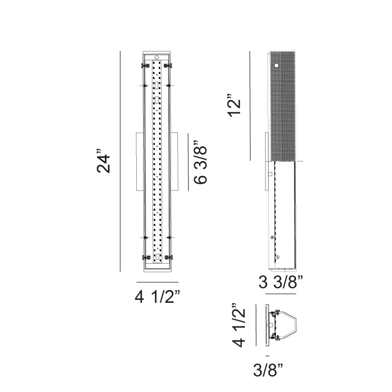 - Size 4 1/2"W x 24"H x 3 3/8"E