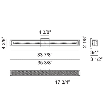 - Size 35 3/8"W x 4 3/8"H x 3 5/8"E
