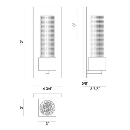 - Size 4 3/4"W x 12"H x 3 7/8"E
