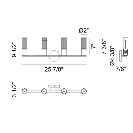 - Number of bulbs 4 x 25W Medium Base-E26 120V
