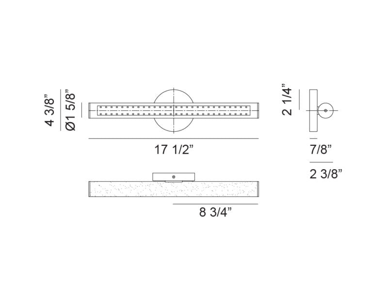 - Size 17 1/2"W x 4 3/8"H x 2 3/8"E