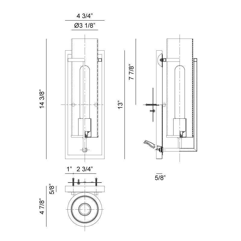 - Size 4 3/4"W x 14 3/8"H x 4 7/8"E