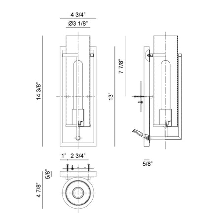 - Size 4 3/4"W x 14 3/8"H x 4 7/8"E