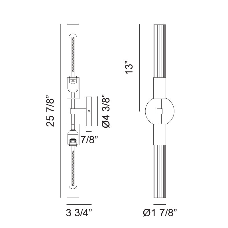 - Size 4 3/8"W x 25 7/8"H x 3 3/4"E