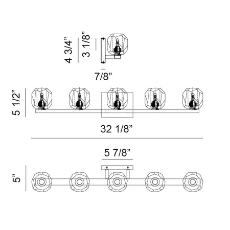 - Size 32 1/8"W x 5 1/2"H x 5"E