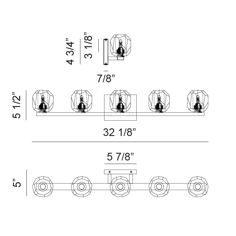 - Size 32 1/8"W x 5 1/2"H x 5"E