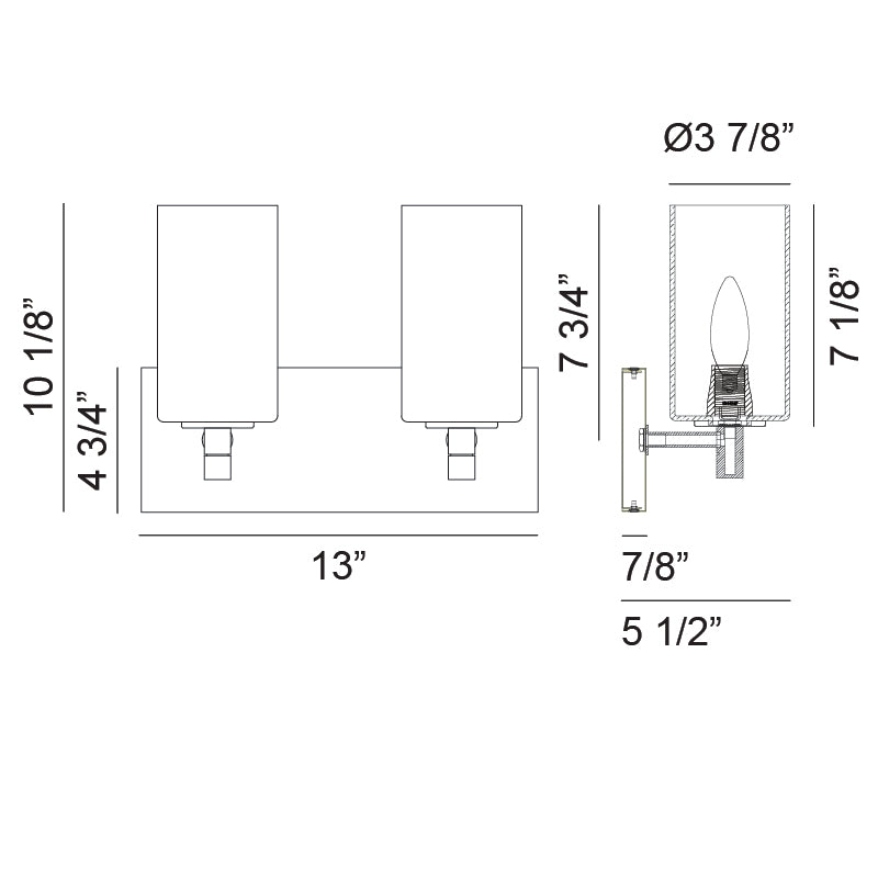 - Number of bulbs 2 x 60W Candelabra Base-E12 120V