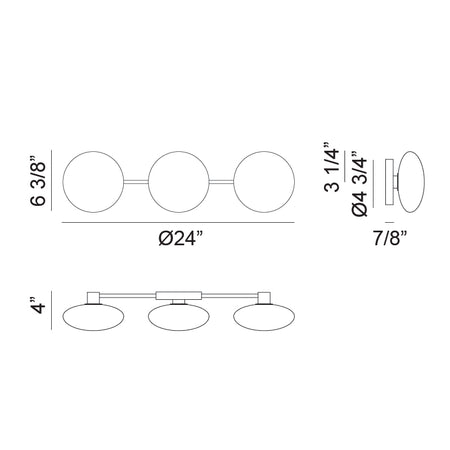 3 LT 24"W "PEARLESQUE" WALL SCONCE -AG-OPAL GLASS