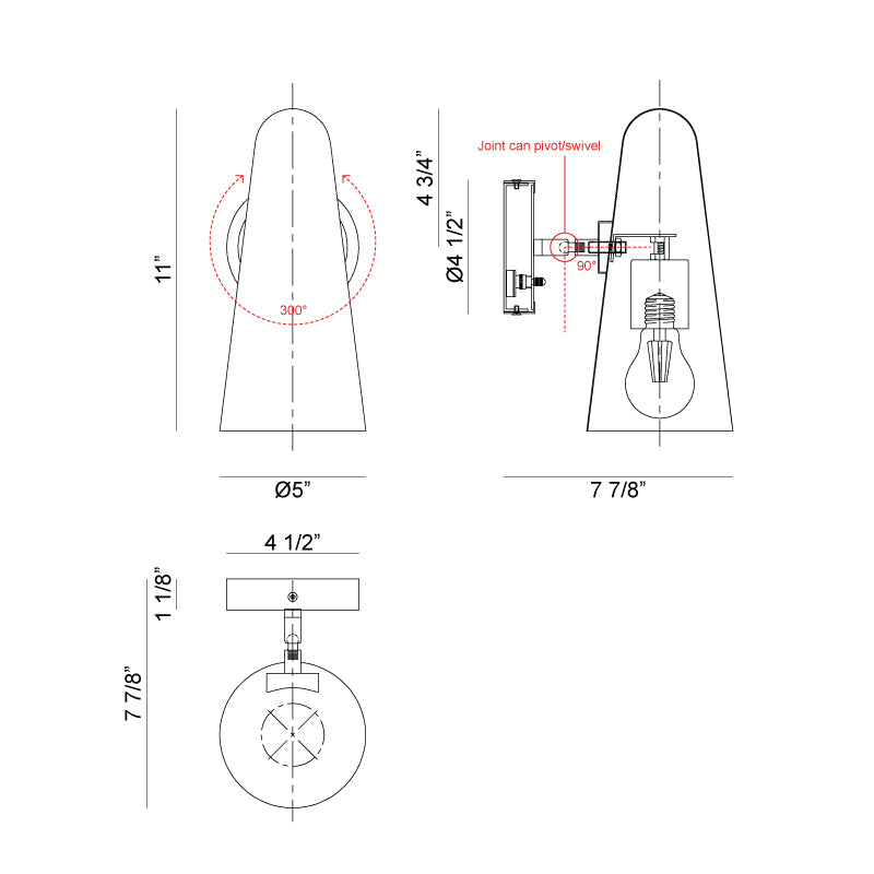 - Number of bulbs 1 x 60W Medium Base-E26 120V