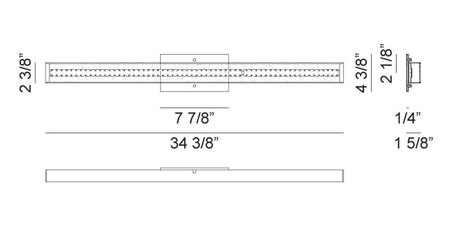 - Size 34 3/8"W x 4 3/8"H x 1 5/8"E