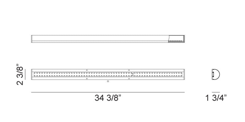 - Size 34 3/8"W x 4 3/8"H x 2"E