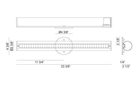 - Size 23 3/8"W x 4 3/8"H x 2 1/2"E