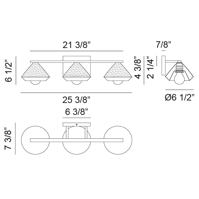 - Number of bulbs 3 x 60W Medium Base-E26 120V