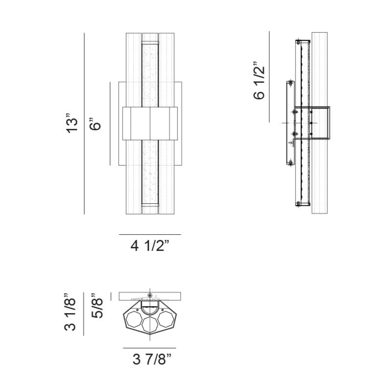 - Size 4 1/2"W x 13"H x 3 1/8"E