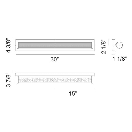 - Size 30"W x 4 3/8"H x 3 7/8"E
