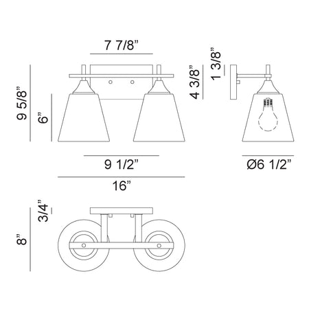 - Number of bulbs 2 x 60W Medium Base-E26 120V